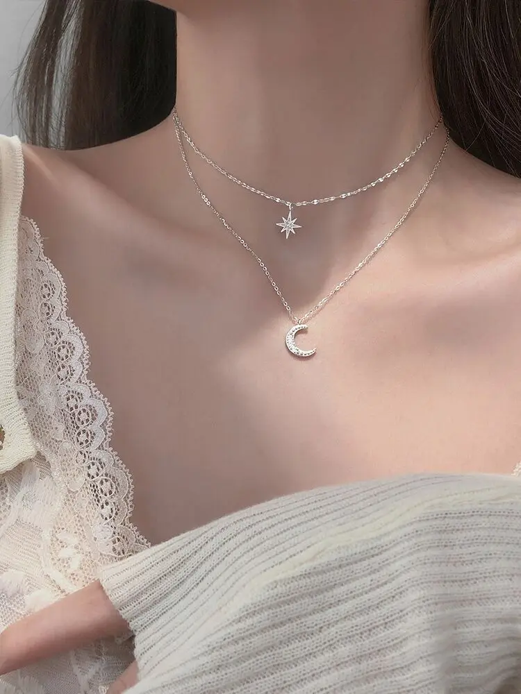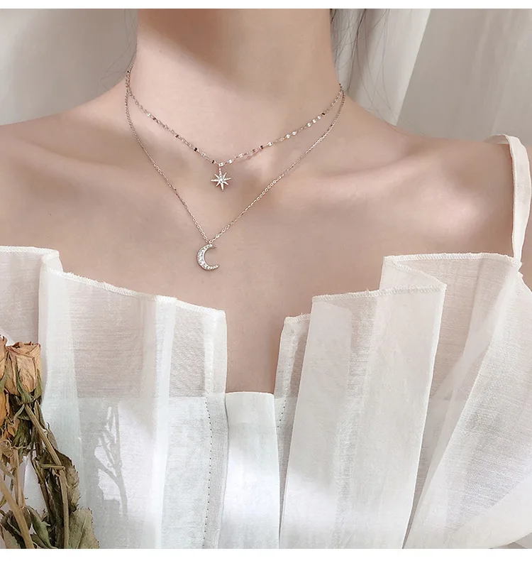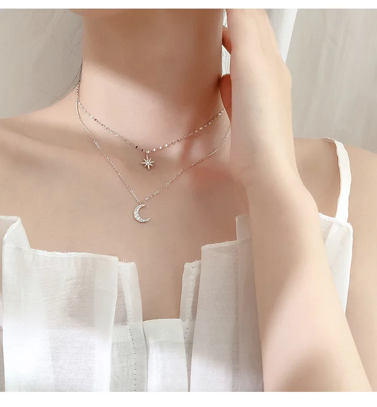 Женская цепочка с подвеской в виде месяца и звезды, серебро 925 пробы