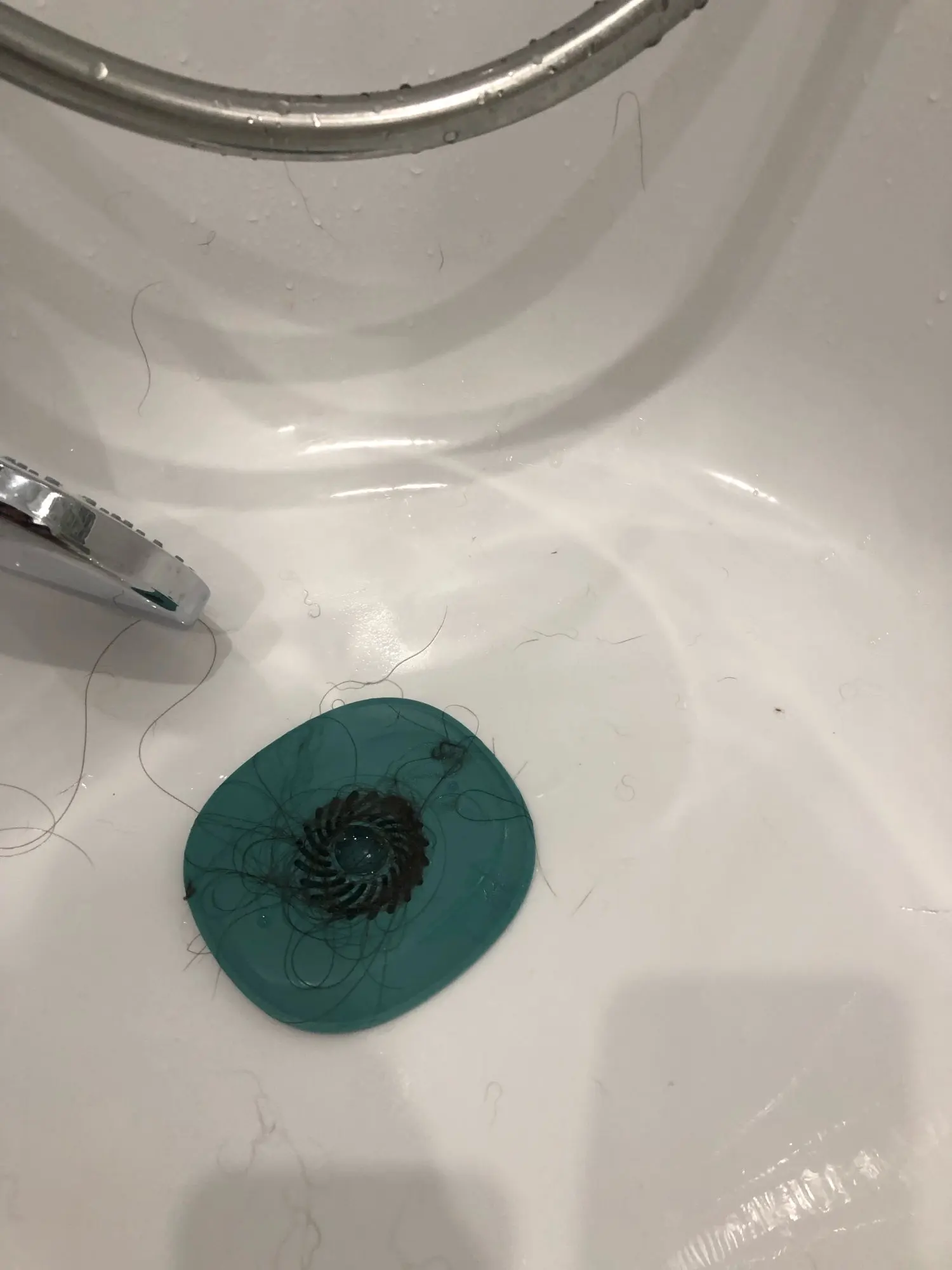 Это бесполезно, потому что его нельзя исправить ни в коем случае, волосы все еще проходят под этим "" колпачком ", направленным к отверстию душа...