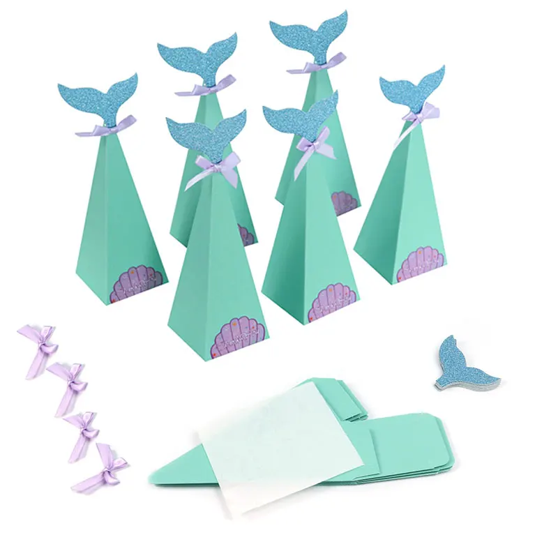 10 шт., коробка для конфет с хвостом русалки, вечерние украшения для дня рождения, вечерние украшения для девочек, коробка для упаковки конфет и печенья