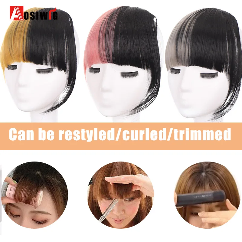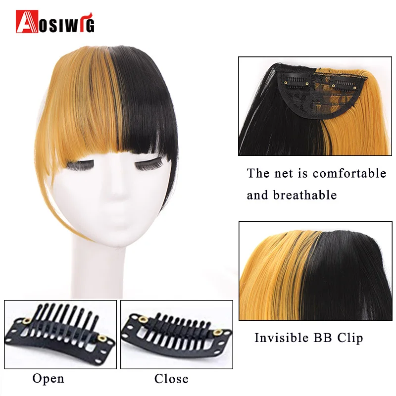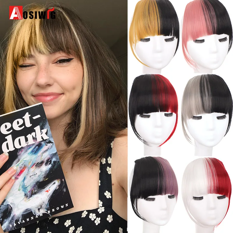 AOSIWIG синтетические челки женские шиньоны с бахромой искусственные накладные пряди для наращивания волос натуральные аксессуары для волос наполовину розовые светлые красные