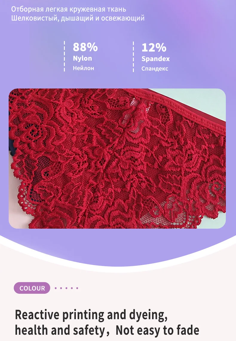 Трусы женские кружевные, мягкие, дышащие, с низкой посадкой, 3 шт.
