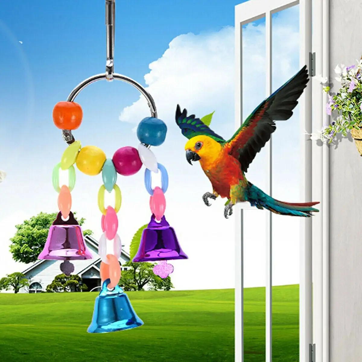 10 шт.компл. декоративные игрушки для птичьих клеток для попугаев надежный жевательные качели подвесное жевательные фрукты кусачки мост деревянных бусин и круглыми бубенчиками игрушки