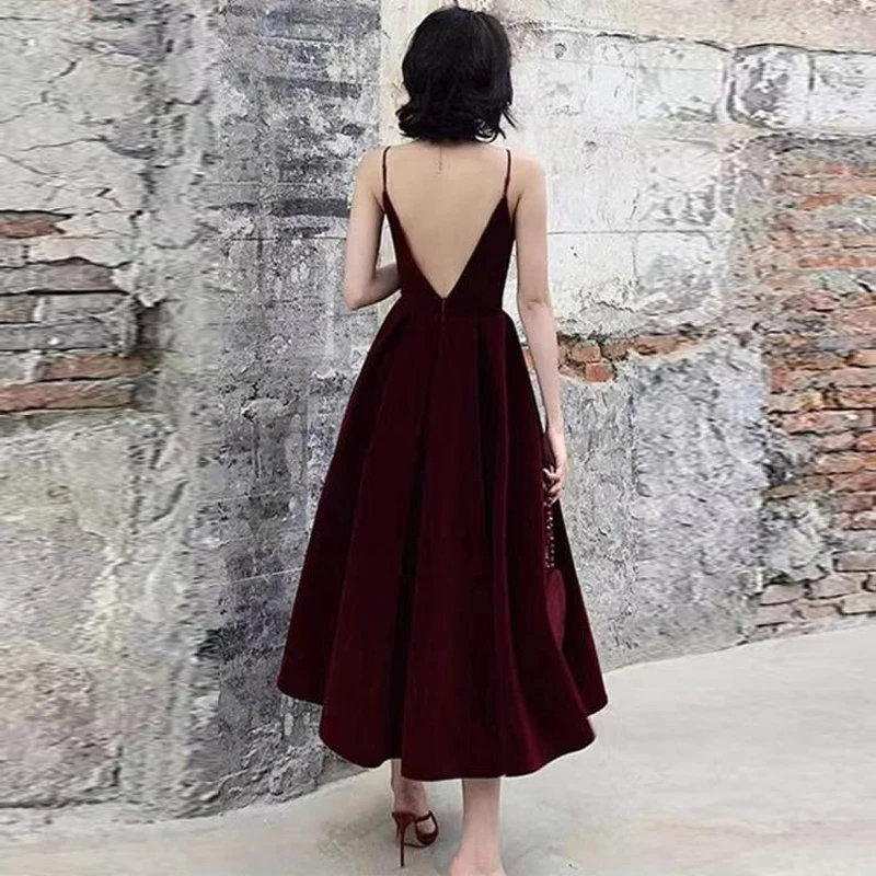 Платье женское вечернее однотонное с V-образным вырезом и открытой спиной, летнее, 2021