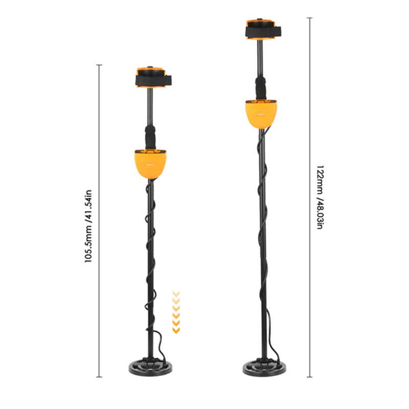 Функции: Идентичность цели: обнаруженные объекты показаны на ЖК-дисплее. Устранение нежелательных целей: вы можете установить детектор, чтобы не отвечать на некоторые объекты. Динамик: используйте водонепроницаемый громкоговоритель. Разъем для наушников: для подключения наушников. Можно использовать как стерео, так и моно-наушники. Регулятор громкости: для регулировки выходного объема на громкий динамик или наушники. Индикатор состояния батарей: показывает состояние батарей в батарейном отделении. Регулируемый стержень: позволяет регулировать длину детектора для удобного использования. Микро-вилка, соединяющая поисковую катушку и блок контроллера, изготовлена из металла, что делает вилку более надежной.