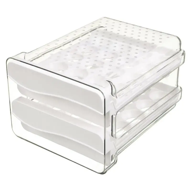 3,60 сетки большой емкости, Двухслойный дизайн, каждый слой может хранить 30 яиц, свободное хранение, экономия пространства. Лоток для яиц закреплен, и паз спроектирован. Каждое яйцо помещается отдельно, чтобы предотвратить тряску и эффективно предотвратить столкновение и поломку яйца.