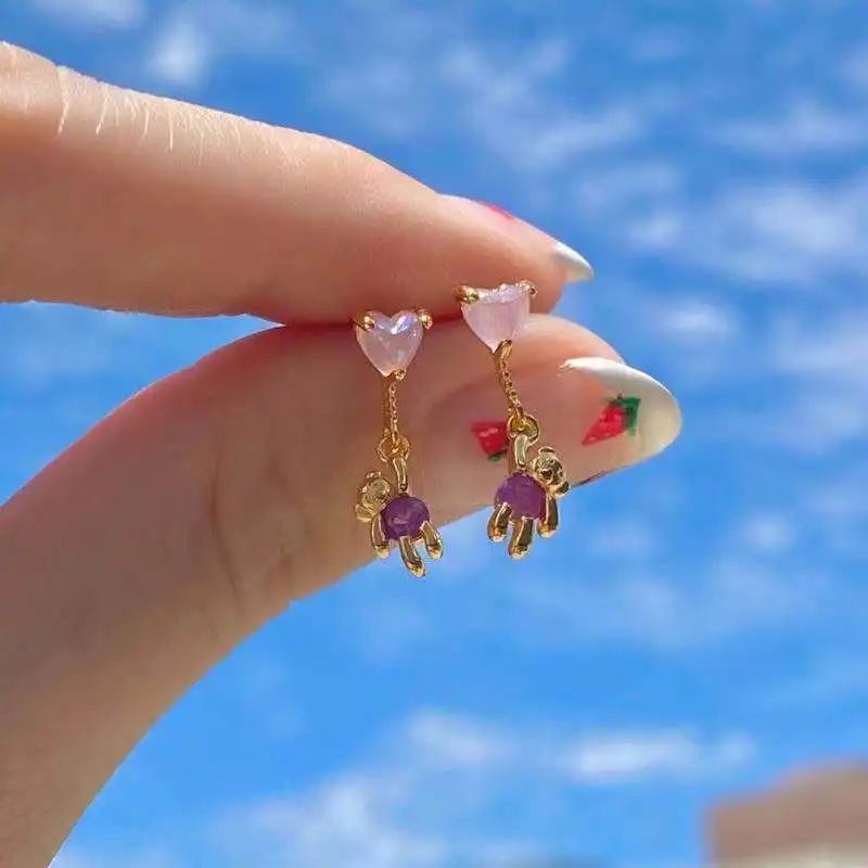 Серьги женские в виде медведя и облака, с инкрустацией из фианита