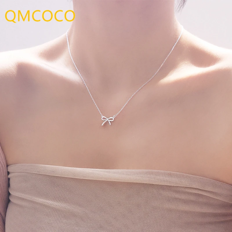 QMCOCO Серебряный Цвет бант до ключиц женская модель для женщин темперамент день рождения модные ювелирные изделия подарки