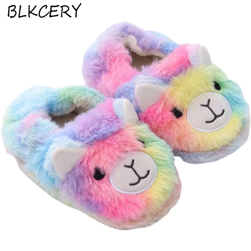 Зимние тапочки с единорогом, детские шлепанцы для маленьких девочек...
