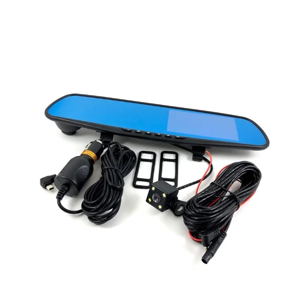 Видеорегистратор в зеркале:Главное достоинство Vehicle Blackbox DVR, как видеорегистратора - это качественная фронтальная камера, записывающая в формате Full HD с разрешением 1920*1080. При этом угол обзора составляет 140°. Используется качественная IPS матрица, которая делает картинку яркой, сочной, четкой, а угол обзора экрана настолько широкий, что изображение не искажается с водительского сиденья.Датчик движения:Автоматическая запись, во время стоянки, только при наличии движения в плоскости обзора, при отсутствии движения запись не ведется. Увидите, что происходит с машиной в ваше отсутствие.Автоматическая регулировка яркости экрана монитора + функция АНТИблик:Автокорректировка яркости (меняется в обусловленности от освещения и времени суток, обеспечивая изображению высокое качество и четкость)Камера заднего вида:Удобный обзор заднего вида. Режим картинка в картинке.Простое крепление и подключение:Регистратор незаметен – это делает его разрешенным по новому законодательству, а также он не будет легкой добычей для воров (т. е. отсутствует необходимость постоянно снимать и прятать устройство)Full HD 1080P:Используется новаторская технология передачи видео Full HD Prof (повышенная четкость изображения).ХАРАКТЕРИСТИКИ:- Матрица: CMOS- Запись видео: 30 кадров в секунду, 1080Р, VGA- Встроенный экран, монитор обладает удобным русифицированным менюТехнические особенности:-Экран: 4,3" TFT-LCD экран с форматом изображения 16:9Особенности видеосъемки:- Функция цифровой стабилизации изображения- Запись видео с кодеком H.264- Функция циклической записи видеороликов (без промежутков)- Функция наложения на видео даты, времени- Функция автоперехода в режим ночной съемки- Функция автостарта записи при подаче питания- Функция автоотключения при выключении питания- Функция автоматической защиты файла по сигналу G-сенсораОсобенности оптики:- Стеклянный объектив с матрицей NT99142 100w/OV2710+ISP(AW6131) 200W- Диагональный угол обзора 140 гр.Особенности звука:- Оснащен микрофоном для записи звука вокруг (можно отключить)- Оснащен встроенным динамиком для воспроизведения звука при просмотре- Разъем 3.5ммОсобенности памяти:- Поддерживает карты памяти MicroSD Class 6 и выше, ёмкостью до 32ГбОсобенности фотографирования:- Фото в формате JPEG- Размер фото 5MpxОсобенности питания:- Оснащен встроенной Li-ion аккумуляторной батареей емкостью 800 mAhДополнительно:- Есть датчик удара (G-сенсор)- Есть USB 2.0