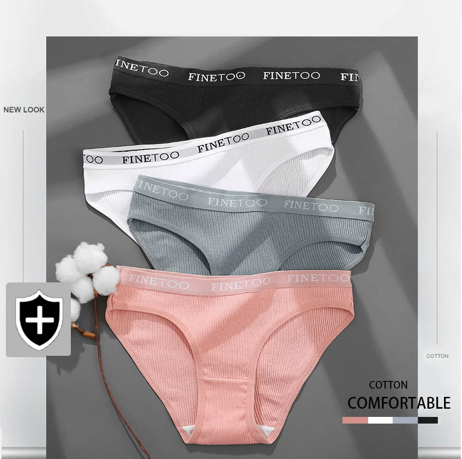 Трусы женские хлопковые FINETOO, 3 шт.компл., сексуальные, однотонные, M-2XL