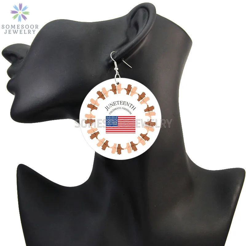 SOMESOOR 19-го июня, празднование американской свободы, деревянные серьги-капли, мощный кулак, художественные печатные петли для женщин, подарки