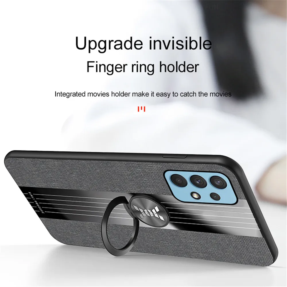 Для Samsung Galaxy A72 4G или 5G Роскошная текстура ткани твердый переплет мягкий каркас кольцо держатель чехол для телефона для Samsung 52 Большие размеры 32-42 12 02