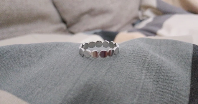 Я приятно удивлен этим кольцом. Он имеет красиво отполированную поверхность и очень минималистичный. Форма кругов является равномерной, и все они выглядят так же. Размер немного меньше, поэтому, если вы выбираете размер больше