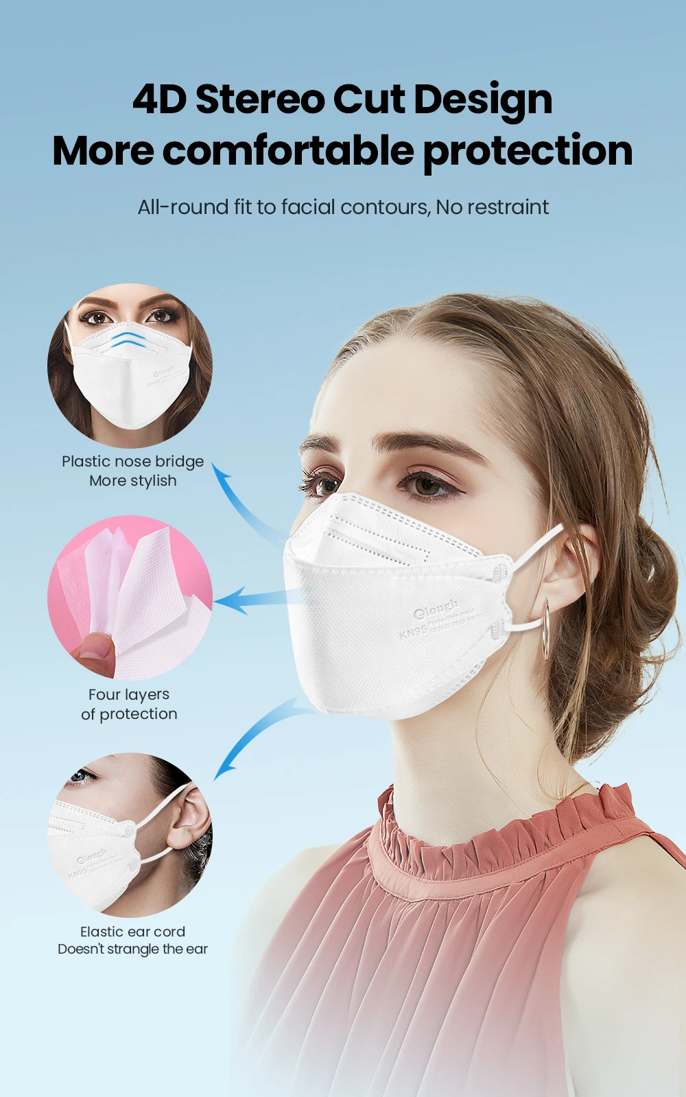 Elough 4-слойная многоразовая маска KN95, маска для рыбы 10-100 шт....