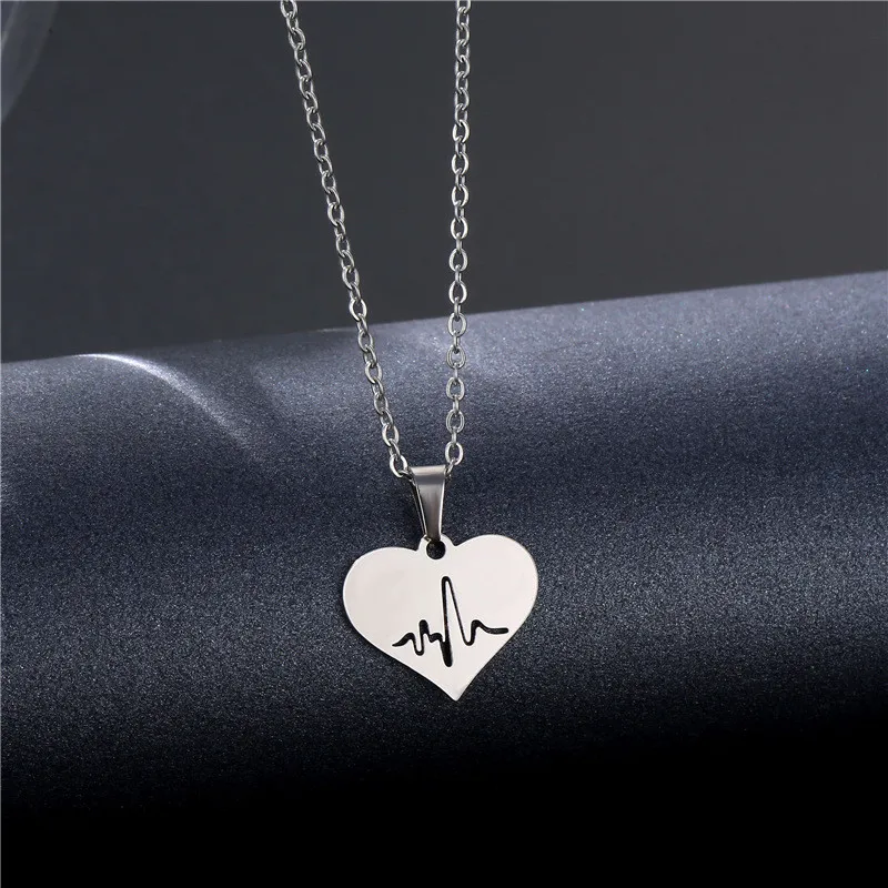 Ожерелье Rinhoo из нержавеющей стали подвеска в виде электрокардиограммы для женщин и мужчин, ожерелье серебряного цвета в форме сердца, ювелирные изделия на день рождения