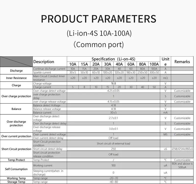 Литий-ионный аккумулятор 4S 12 В, 10 А, 15 А, 20 А, 30 А, 40 А, 50 А, 60 А, зарядное устройство 18650, PCB плата защиты BMS с балансом для модуля Lipo 14,8 вМодель: DL4S (литий-ионный аккумулятор с номинальным напряжением 3,7 в не для LiFePO4 с номинальным напряжением 3,2 В)Обычная версия: общий порт для зарядки/разрядкиОтдельная версия: отдельный порт для зарядки/разрядкиМы можем настроить любую печатную плату от 1S до 30S литиевых батарей с разным током. Особенность: для той же модели ток заряда меньше тока разряда, так как платы Daly были обновлены для надежной защиты аккумулятора клиента. По любым вопросам, пожалуйста, свяжитесь с нами. Daly: январь 2020 1. Обзор◆ DL4S12V10A/15A/20/30A/40A/50A/60A bms используется для аккумуляторных батарей 4 серии 12 В.◆ Мы можем конструировать его для различных литиевых батарей, таких как LiFepo4, LiMn2O4, и Li-polymer и т. Д.◆ Основные функции: защита от перезарядки, защита от разрядки, защита от перегрузки по току, защита от короткого замыкания, защита от температуры и т. д.◆ Согласно запросу клиента мы можем разработать PCM в различных размерах и структурах.◆ BMS изготовлено высококачественными импортными МОП и ИС. Длительный срок службы батареи. 2. Преимущество◆ Используйте высококачественную (A-level) Защитную интегральную схему IC, от решения Seiko из Японии.◆ Сильная нагрузка, ток постоянная разрядка а/15 А/20/30 А/40 А/50 А/60 А, сопротивление высокого напряжения, низкое внутреннее сопротивление мощности полевого МОП-транзистора. Радиатор значительно поможет охлаждать.◆ IC сам имеет функцию балансировки мощности. Схема проста и надежна.◆ Типичное Определение напряжения для каждой ячейки. Таким образом, каждый аккумулятор не будет перезаряжен или разряжен. Функция защиты от перегрузки по току и короткого замыкания очень надежная. Длительное короткое замыкание нагрузки не влияет на печатную плату и аккумулятор. Температурная защита во время зарядки и разрядки.◆ Очень низкое энергопотребление. Потребление всего устройства составляет менее 50 мкА.◆ На печатной плате используется высокая защита от коррозии, Высокая водонепроницаемость, высокое сопротивление ESD конформное покрытие.