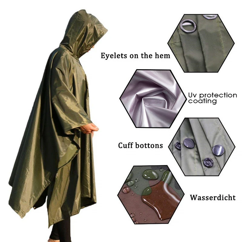 О доставке:1. Для заграничных складских перевозок, Испании и Франции, Италии, Австрии, Нидерландов, Бельгии, Люксембург, Португалия, Германия, Венгрия, Дания, Польша, Чехия, Словакия, Словения, эти страны могут быть доставлены в течение 7 дней2. У нас есть полный запас, будет отправлен в течение 24-48 часов о ваших заказах. У нас есть прямая поставка, пожалуйста, свяжитесь с нами, если Вы осуществляете Прямая поставка!3. Мы сохраняем высокое качество и более низкую цену. Добро пожаловать к новым и старым клиентам.Описание товараМульти-использование военный тактический Водонепроницаемый Рипстоп с капюшоном камуфляж дождевик пончо для мужчин женщин мужчинКамуфляжное пальто в стиле милитари с капюшоном, изготовлено из высококачественного водонепроницаемого нейлона ripstop. Это пончо ripstop является 100% водонепроницаемым и называется ripstop из-за особого переплетения, которое проходит через материал. Изначально это материал военного дизайна, который используется во многих тканях и приложениях. Он также позволяет материалу быть легче, не теряя силы. Многофункциональная вещь имеет люверсы на подоле для использования в качестве укрытия или наземного листа, и нажмите на шпильки с сторон, что позволяет использовать его в качестве чехла для спального мешка или даже пончо.Посылка:1 пончо от дождя1 х подходящая сумкаМатериал: сетчатая ткань 210TРазмер: Длина: 220 см, ширина: 140 см (при полном разложении)Особенности:Используйте в качестве аварийного укрытия или спального мешка при использовании d в качестве военного пончо, защищает вас и ваш рюкзак от сильного ветра и дождя, Универсальный простой в носке плащМногоцелевой. Можно не только использовать в качестве плаща, Это тент, влагостойкие коврики, дождевик, укрытие не промокает, меняйте коврики солнечно, с веревкой, чтобы сделать небольшой навес, избегайте солнца.Экологически чистый, нетоксичный, износостойкий, удобный, без расслаивания, в итоге становится старением, водонепроницаемость, эффект камуфляжа очевиден.Различные приложения. Водонепроницаемое пончо идеально подходит для выживания, кемпинга, рыбалки, охоты, военных, тактических и других видов активного отдыха, а также костюмов на Хэллоуин!Теплое напоминаниеВозможна небольшая разница в цвете из-за монитора, камеры или других факторов, пожалуйста, обратитесь к физическому товару.Пожалуйста, ознакомьтесь с измерениями. Небольшая погрешность измерения допустима в нормальном диапазоне.