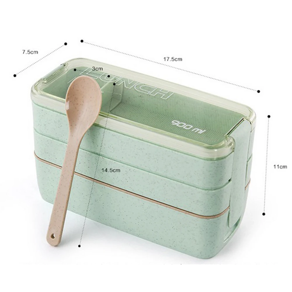 900 мл 3-слойный бэнто-бокс, экологически чистый Ланч-бокс для микр...