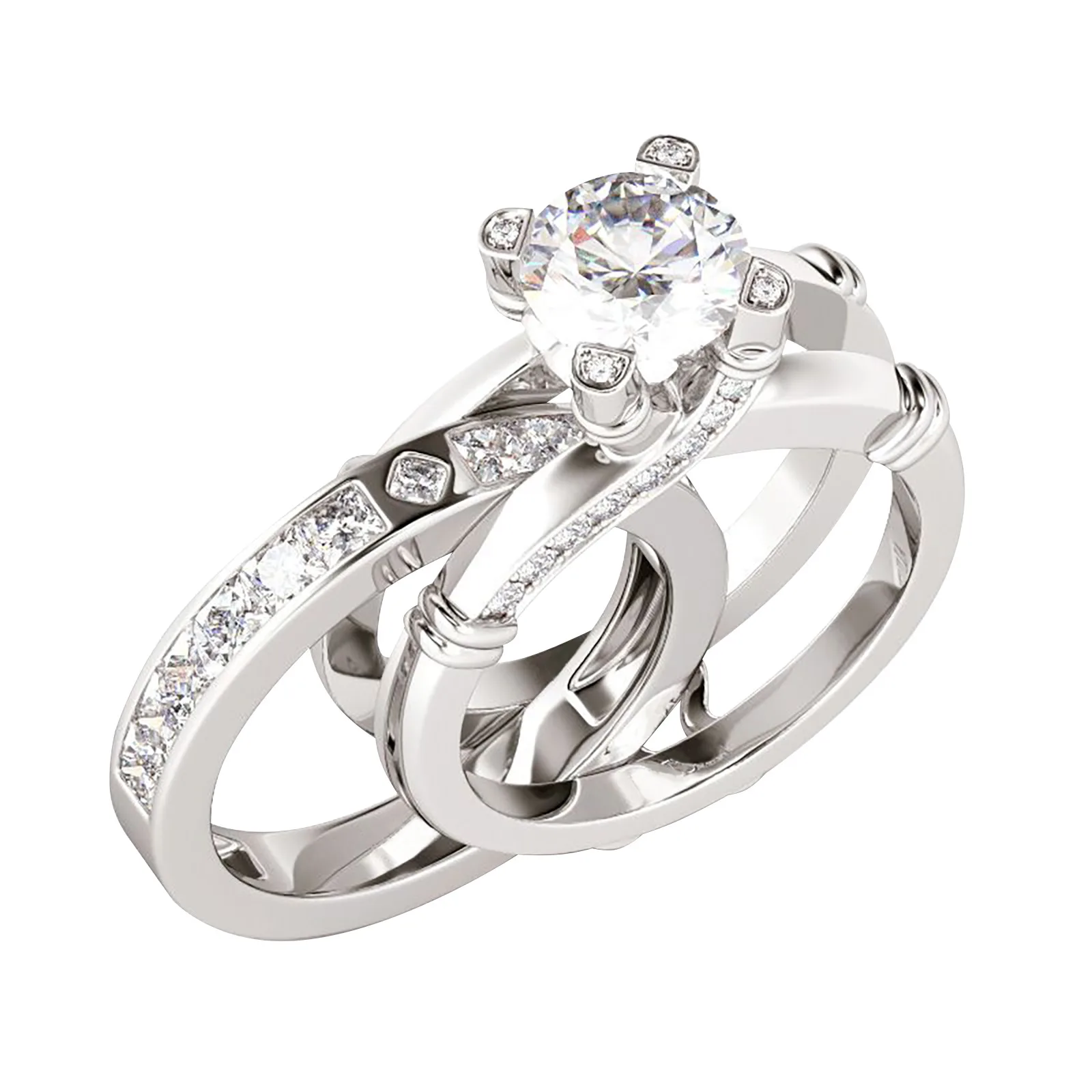 2 в 1 Набор креативных комбинированных колец с цирконием и универсальным модным кольцом