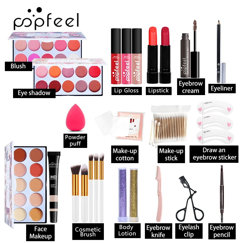POPFEEL макияж 82527 набор все в одном набор Тени для век Палитра помады консилер Кисть для макияжа косметический подарок для девочки TSLM1