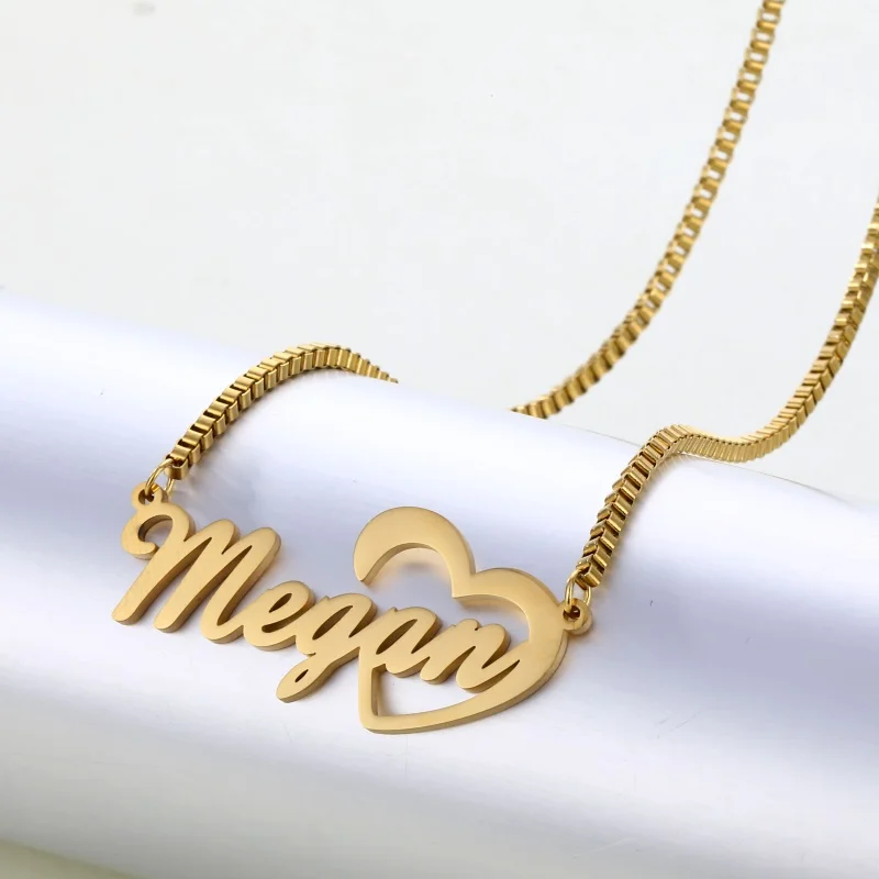Индивидуальные ожерелья с именем для женщин и мужчин, ювелирные изделия из нержавеющей стали, позолоченные сердечки, бижутерия