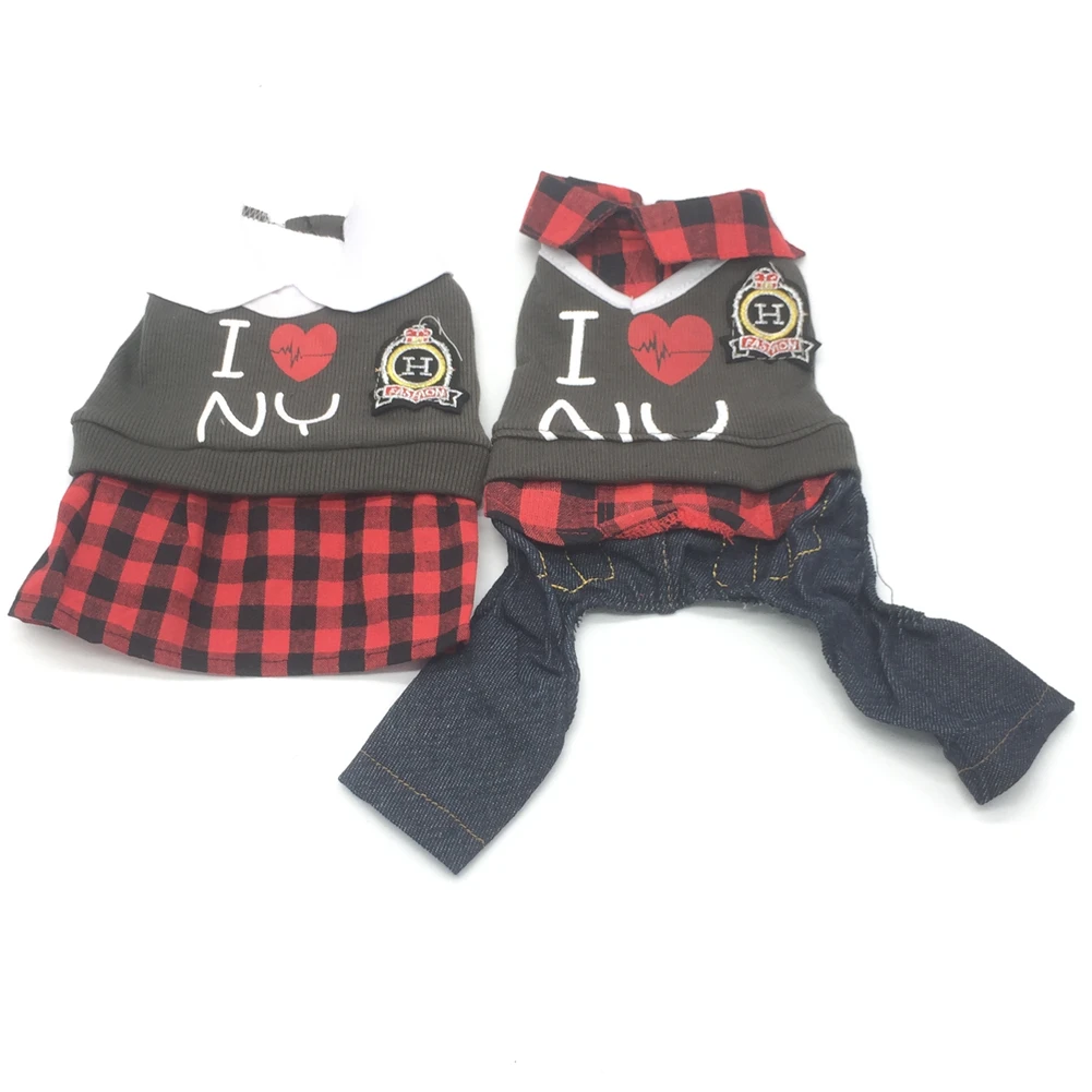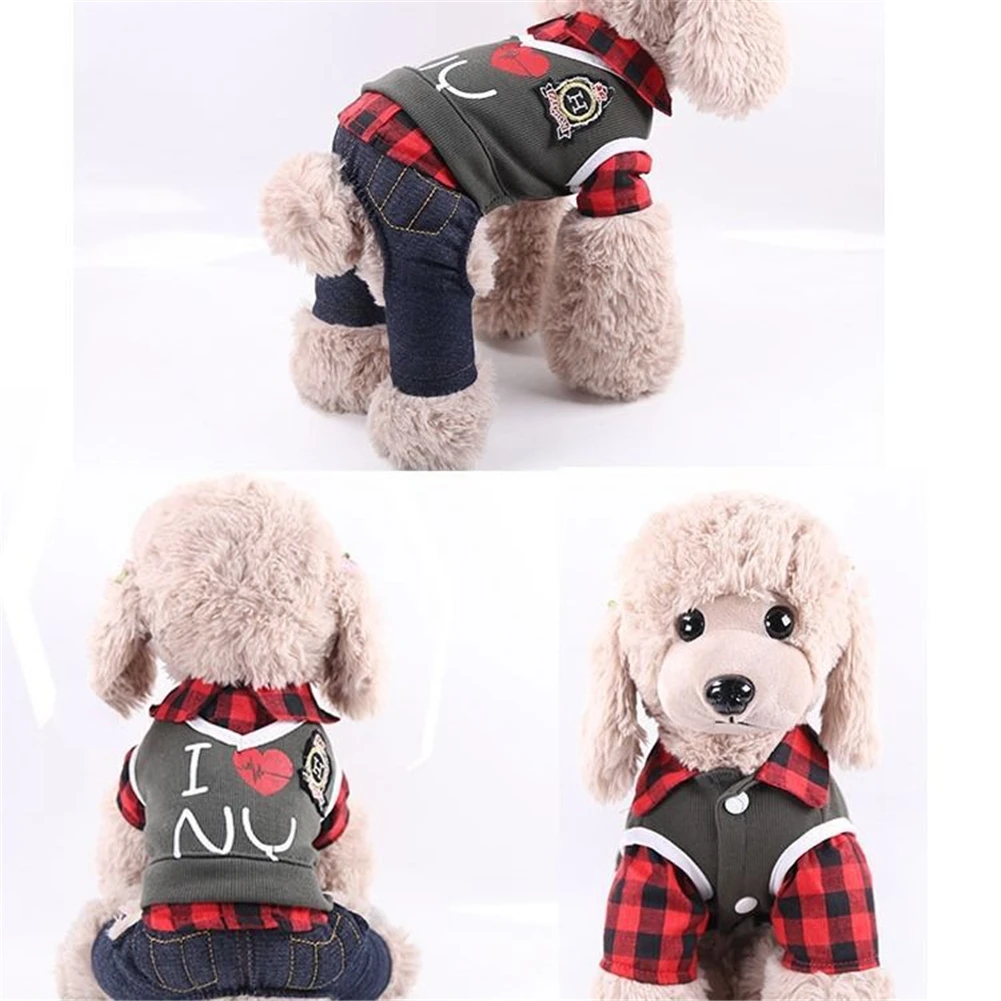 Клетчатая рубашка и джинсовые штаны, жилет, комбинезон для собаки, Осень-зима, Модный комплект одежды для домашних животных, для мелких, средних животных, чихуахуа, Йорка