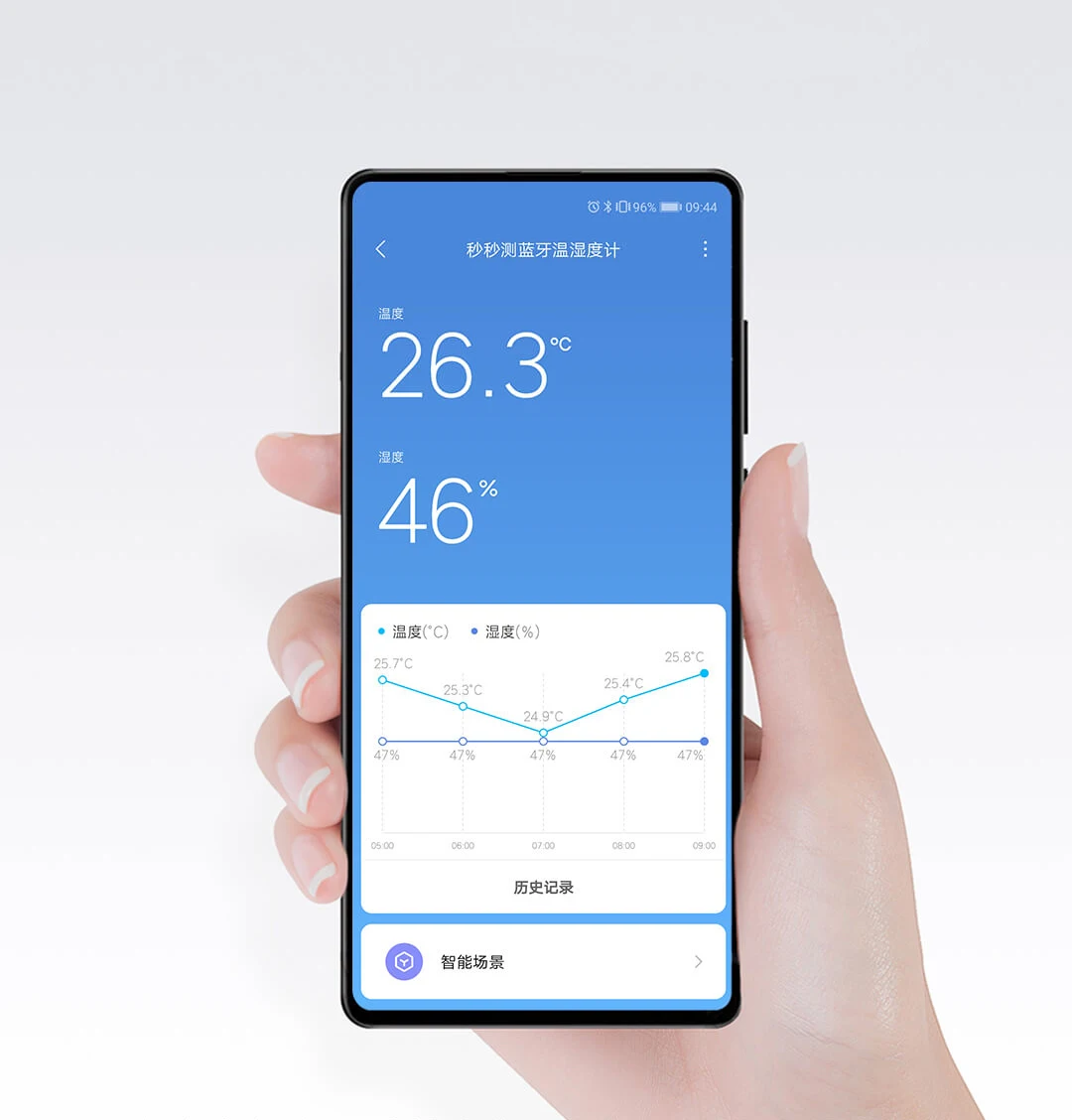 Откройте приложение Mijia и добавьте устройство для измерения температуры и влажности. Вы можете просмотреть кривую изменения температуры и влажности в реальном времени. Данные об изменении температуры и влажности будут храниться в корпусе термометра и облаке одновременно.
