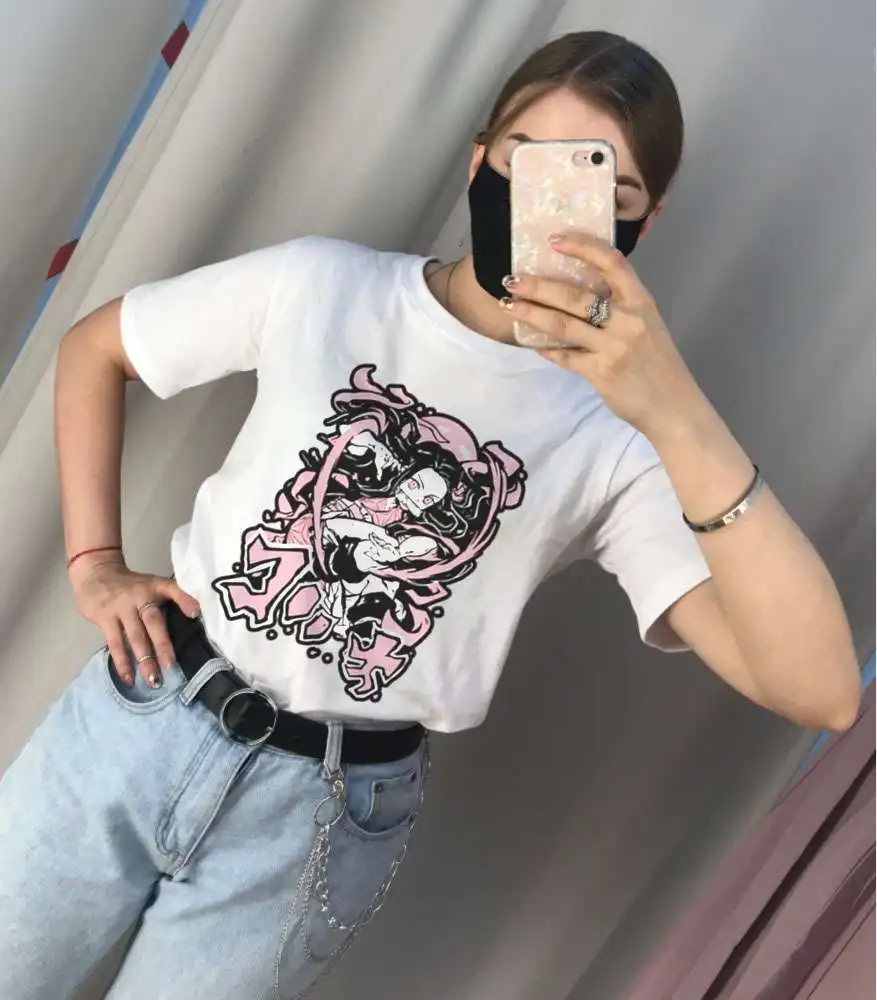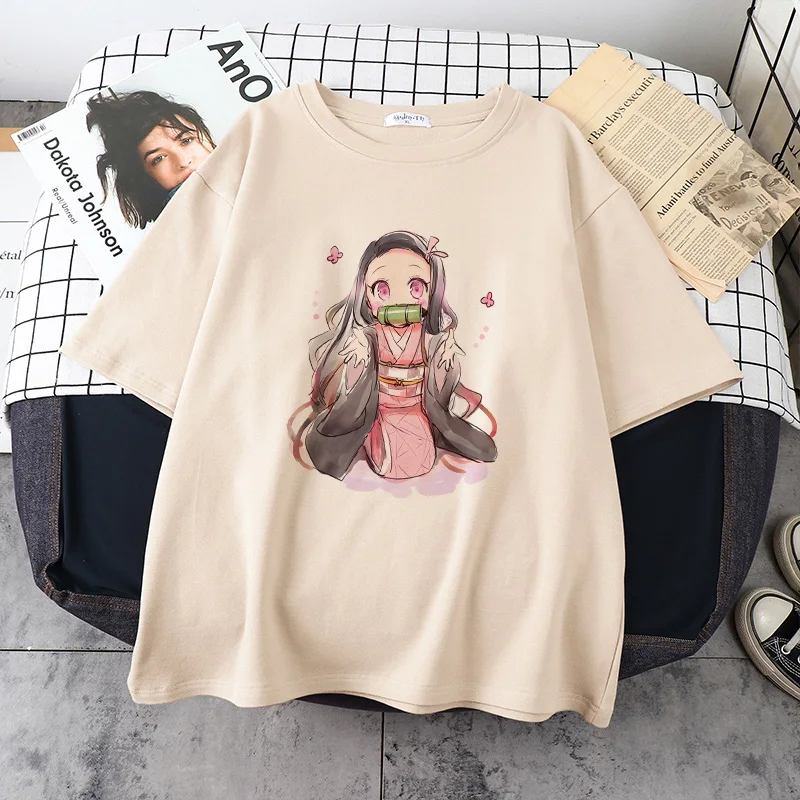 Женская футболка с принтом, черная уличная Футболка с принтом Demon Slayer Kimetsu No Yaiba, Корейская летняя свободная футболка