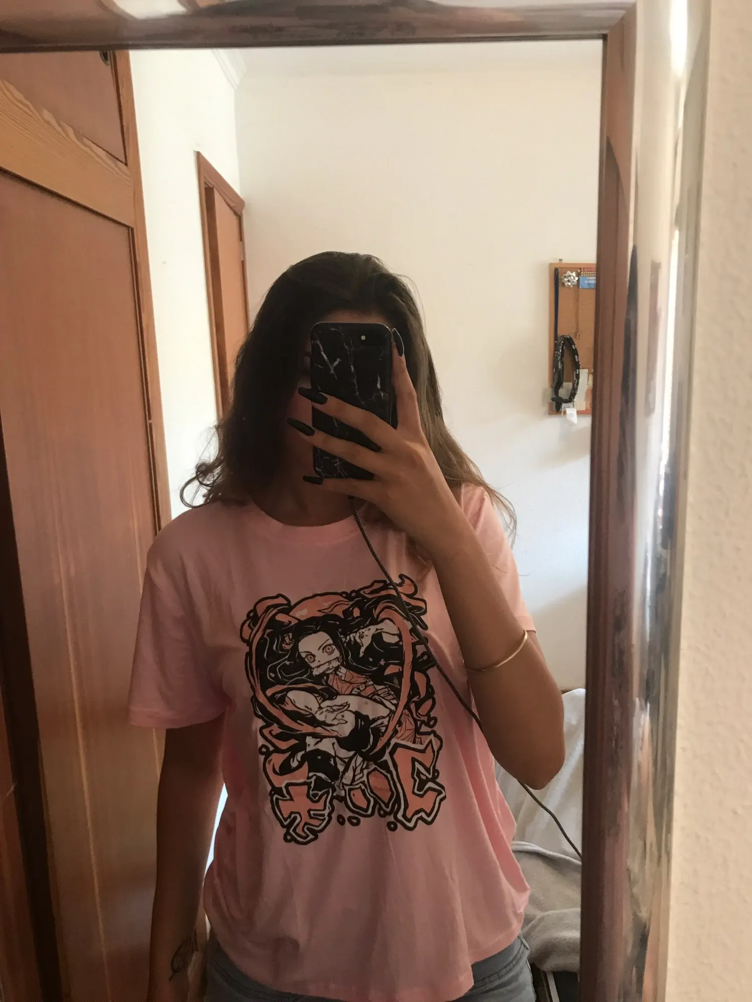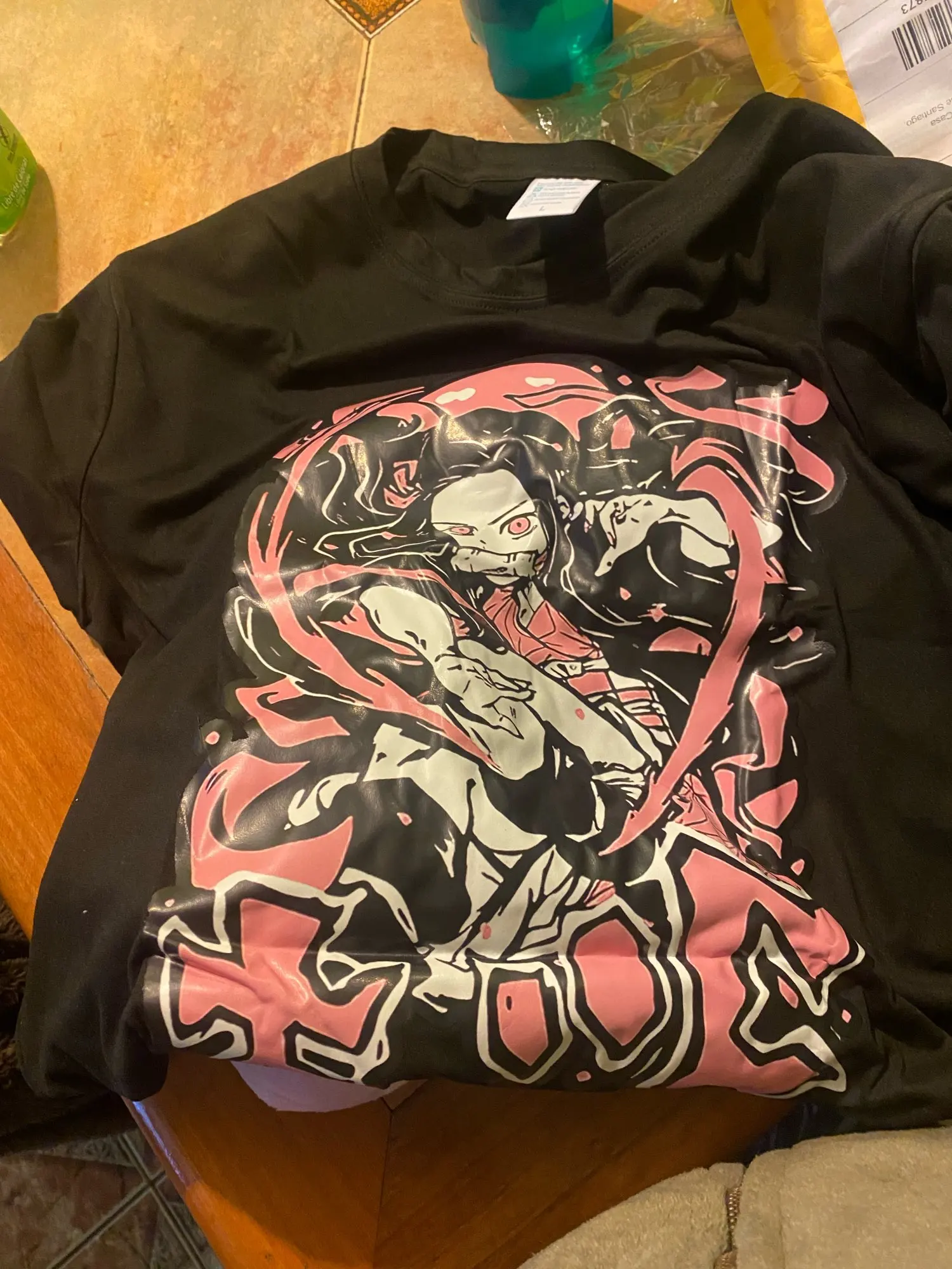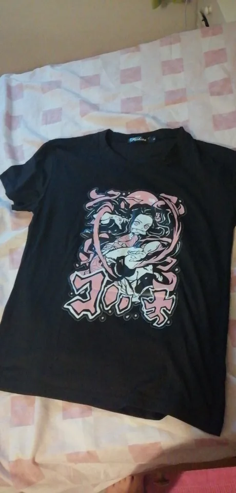 Me gustó esta camiseta, el diseño de Nezuko es lindo y original uwu, pero lamentablemente no sabía que el material era poliéster y es estampado de vinilo, prácticamente es como una foto o goma pegada en la camiseta. Pero si no tienes problema con que sea de poliéster y no algodón, la recomiendo. Y el precio me parece muy bien en cuanto a todo. 7/10
