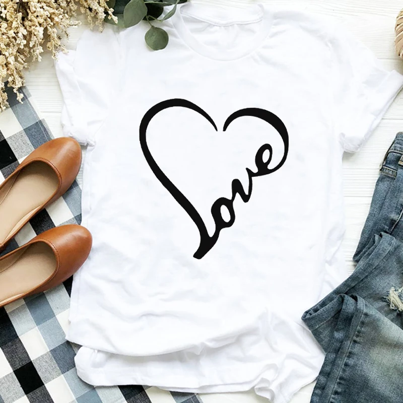 Модная футболка в стиле 90-х с принтом сердец, женская одежда с при...