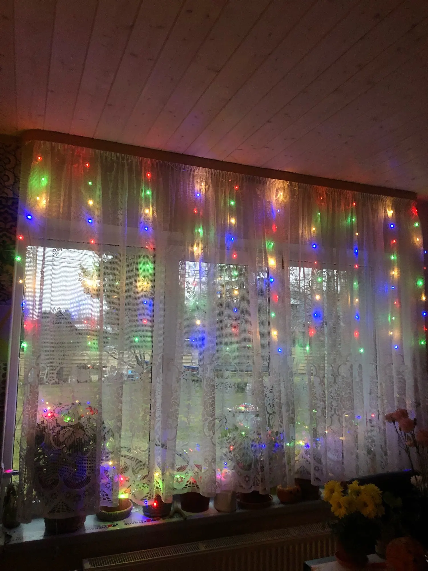 Доставка в Украину Мееst exspressом 22.10-12.11. Гирлянда - любовь, любовь! Яркая, нити тоненькие, как проволочки. Можно выровнять, я оставила спиральками. Каждая скручена индивидуально. Не запутанные. Нитей 10 шт. Пульт без батарейки.