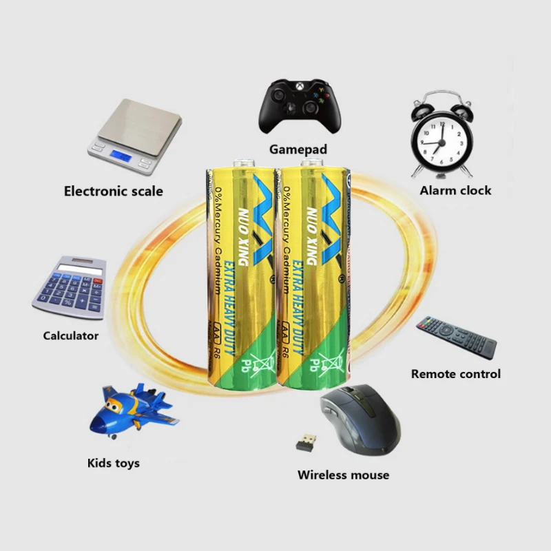 Батарея AA R6PТип батареи: AA батарея 1,5 V R6P UM3 марганцево-Цинковый ужин Heavy Duty сухой и основной батареиБренд: NXМодель: AA R6P UM3 сверхмощная цинковая углеродная батареяРазмер: AAНапряжение: 1,5 VВысота: 49,2-50,5 ммДиаметр: 13,5-14,5 ммЕмкость: 3,9 Ом, 24 ч/д, 105 минутХимия: хлорид цинкаСрок годности: 3 года