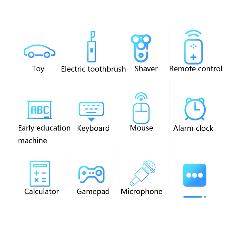 Применение: MP3, камера, вспышка, бритвы, электрические игрушки, cd-проигрыватель, пульт дистанционного управления, беспроводная мышь, клавиатура, walkman и так далее.