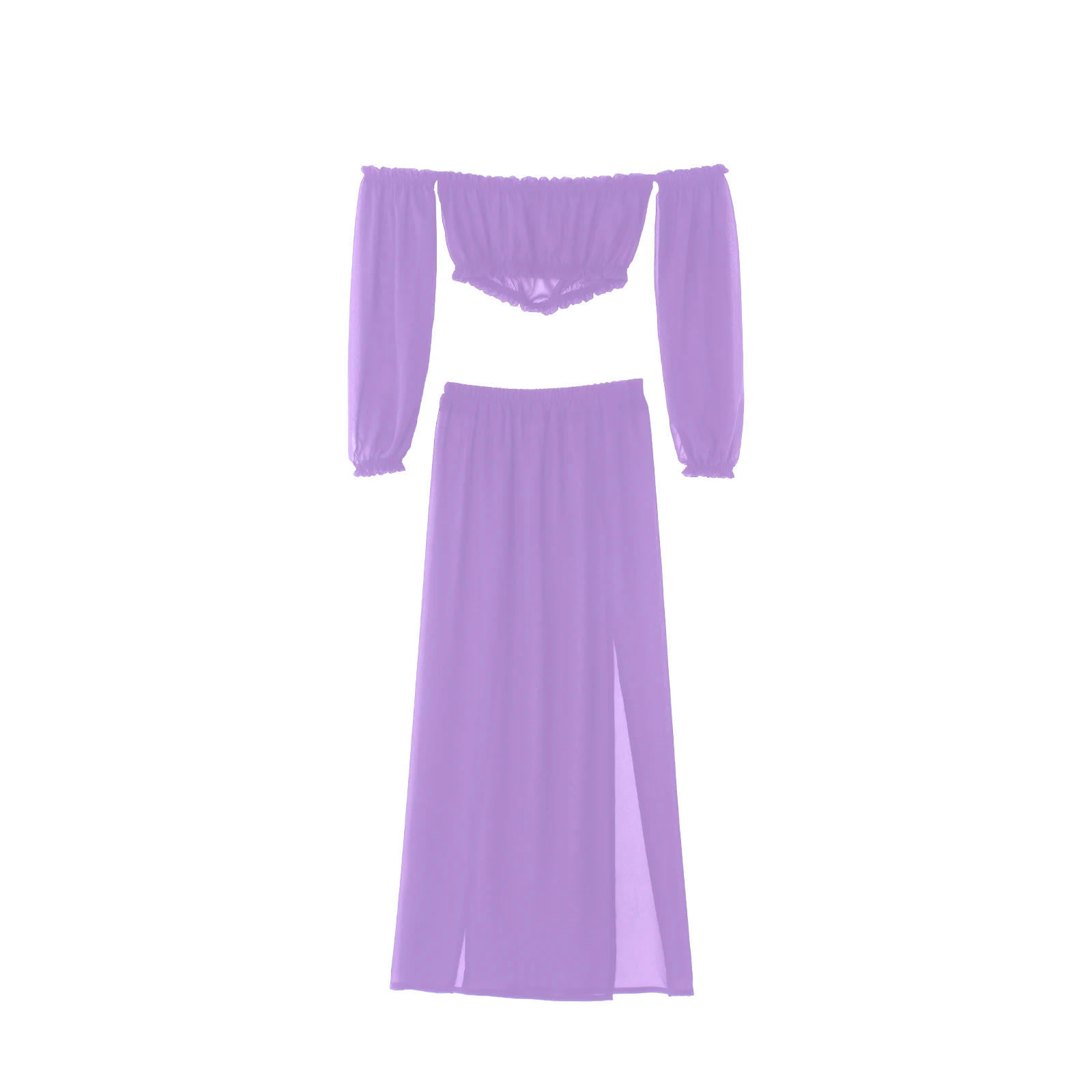 Женский костюм-двойка, Топ с длинным рукавом и открытыми плечами и ...