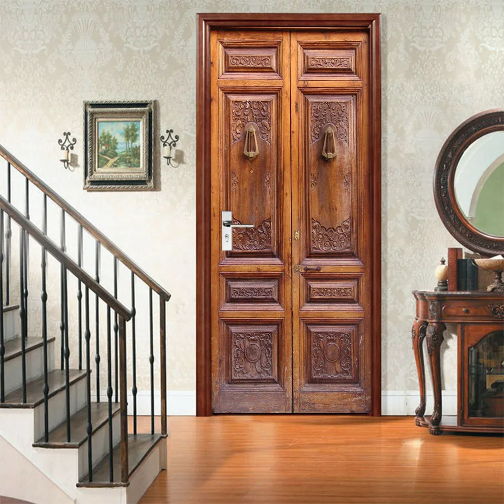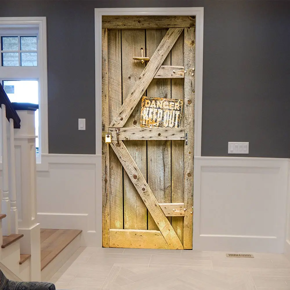 Современный домашний декор с текстурой древесины, дверь сделай сам из ПВХ, водонепроницаемая Классическая наклейка с рисунком, безопасная телефонная будка, самоклеящаяся бумажная кровать
