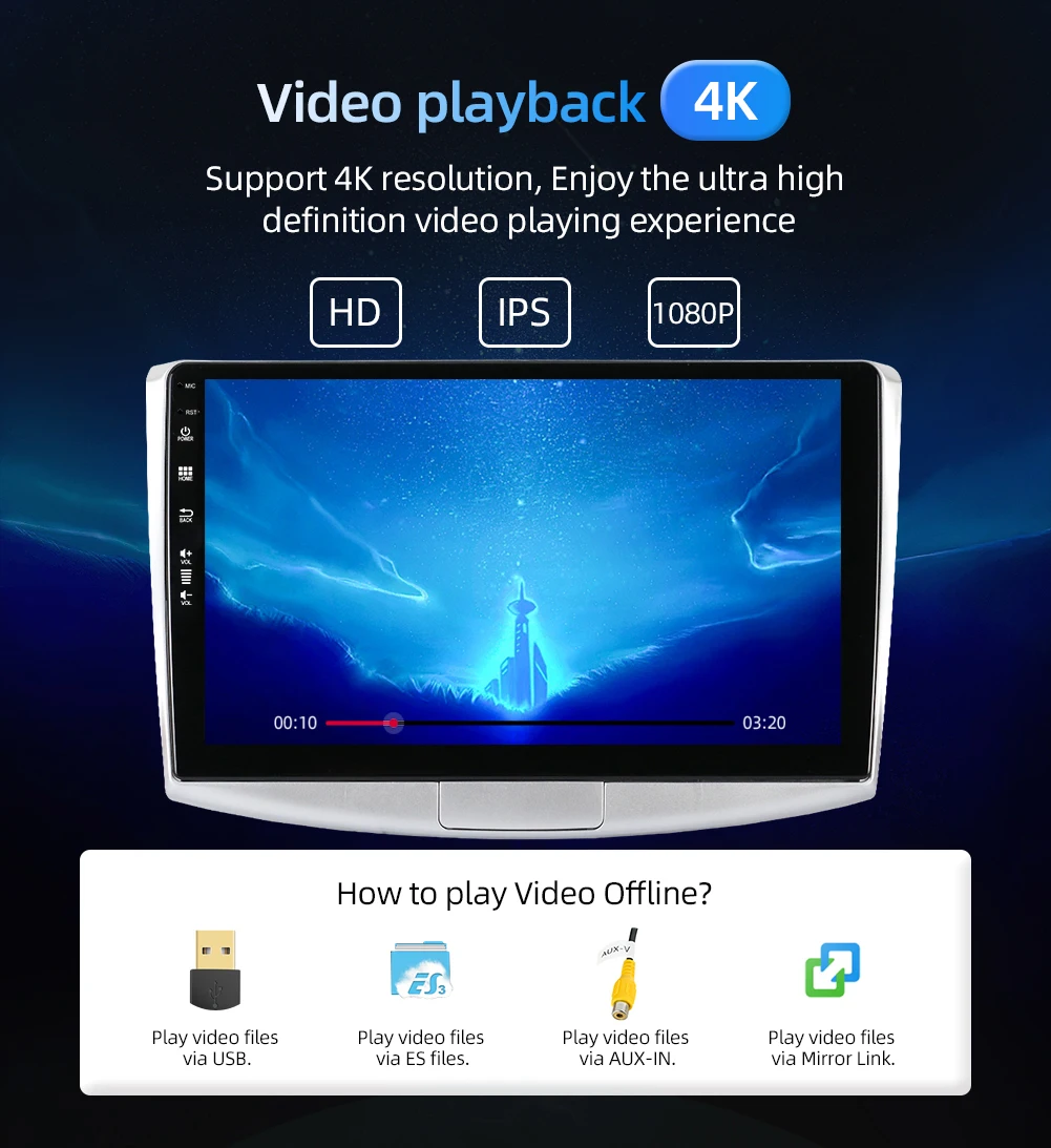 【Продажа очков 】▲Быстрая загрузка (3 секунды)/Встроенный carplay/DSP/IPS экран/Bluetooth 5,0/Поддержка 360 панорамной камеры (нужно купить 360 панорамной камеры)【TOP HARDWARE】▲-На базе Android 10.0 операционная система-AC8257 A35 /Octa Core /4 ГБ ОЗУ/64 Гб ПЗУ-Бесплатная камера заднего вида-Максимальная емкость, не более «недостаток» в памяти, делает обработку данных более эффективной, в то время как режим ускорения оптимизирован быстро и плавно【Многофункциональность 】▲Поддержка Dab + Радио, зеркальная ссылка и оригинальная функция управления рулевым колесом автомобиля, USB & micro SD до 500 Гб, встроенный WiFi Интернет, Google Maps онлайн навигация, Бесплатная автономная навигация по карте, магазин Google Play