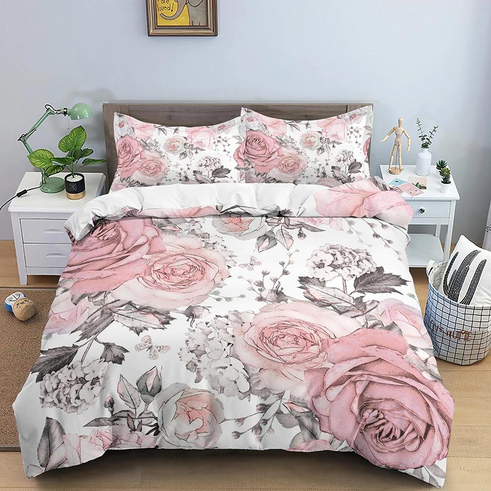 Комплект постельного белья с пододеяльником с цветочным рисунком