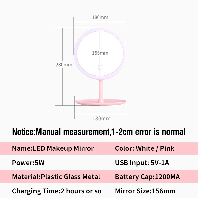 В очередной раз случайно уронил зеркало, оно разбилось и пришлось его выбросить. В качестве нового решил порадовать любимую и подарить ей более удобное зеркало с подсветкой. После распаковки посылки в комплекте само зеркало и кабель зарядки к нему. Очень понравилась сама концепция подсветки по кругу всего зеркала и сенсорная кнопка которая включает, выключает, делает подсветку ярче и тусклее и переключает режимы подсветки холодный, нейтральный или тёплый свет. Из минусов это пластмасовый розовый корпус зеркала который выглядит по дешмански и портит немного всё удовольствие. Но подозреваю как часто мы меняем эти зеркала, то это сильно на долго не затянется и мы купим такое же зеркало но в металическом корпусе. Товар отправили быстро и доставили тоже без проблем и всё целое.