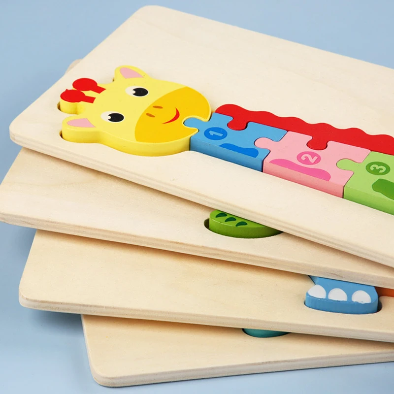 Детские игрушки Монтессори деревянный пазл 3D Животные головоломки ...