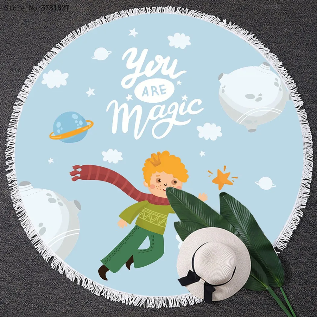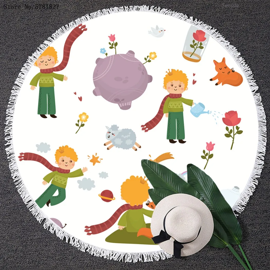 Круглое пляжное полотенце с кисточками The Little Prince, летнее мультяшное одеяло, матовое тканевое покрывало для йоги и плавания, круглое пляжное полотенце для маленьких мальчиков