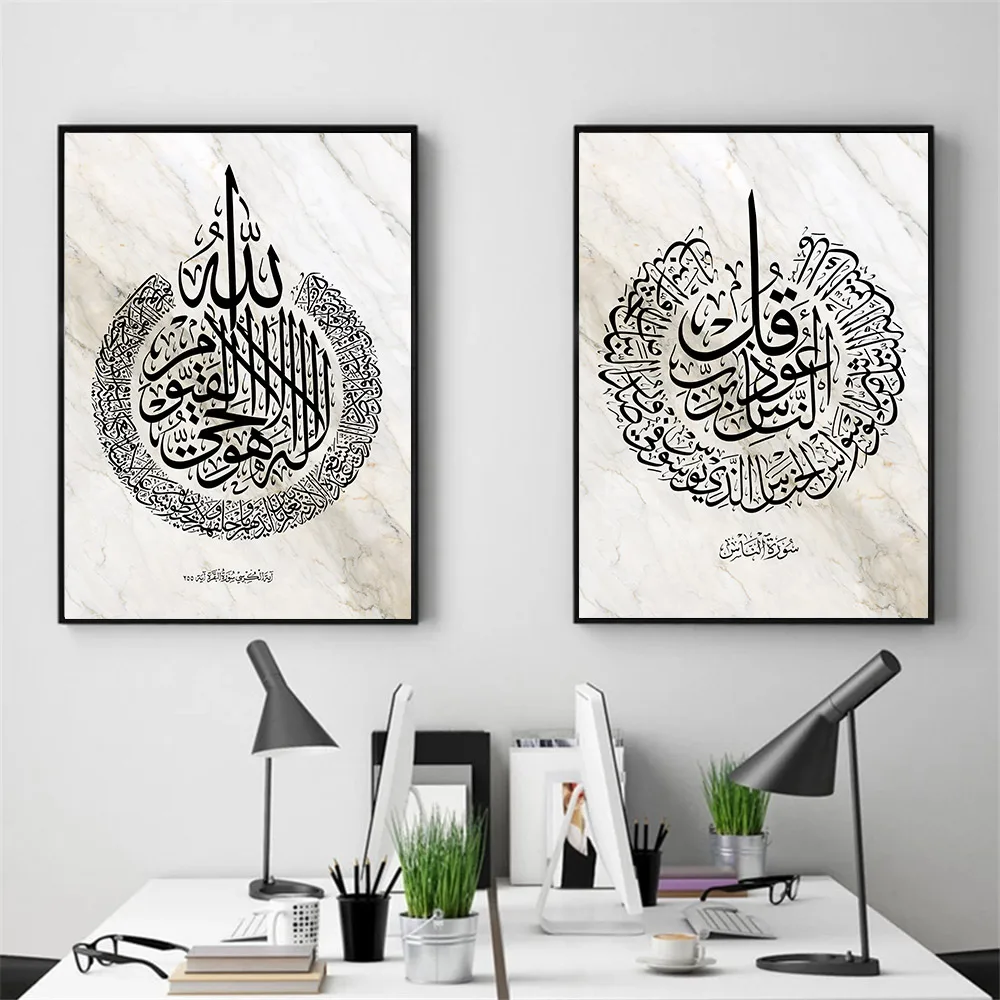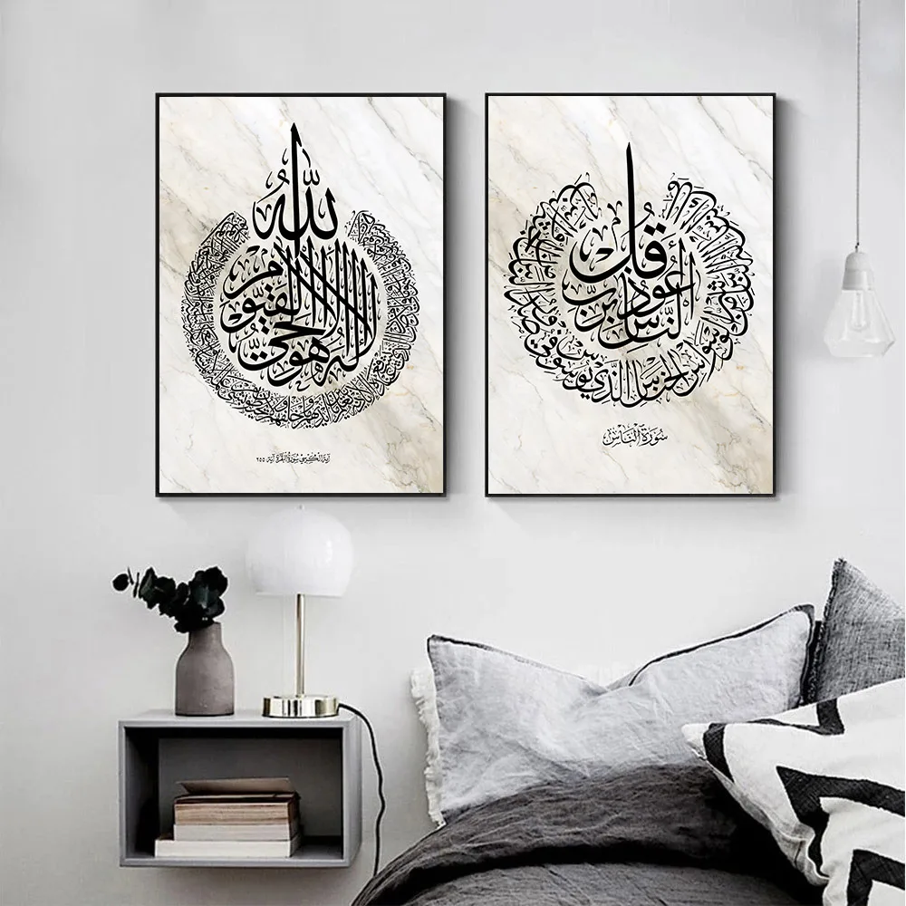 Ayat Ul ислам Kursi ic настенный художественный Печатный мрамор арабский холст постер ислам Каллиграфия Живопись современные настенные картины декор для спальни