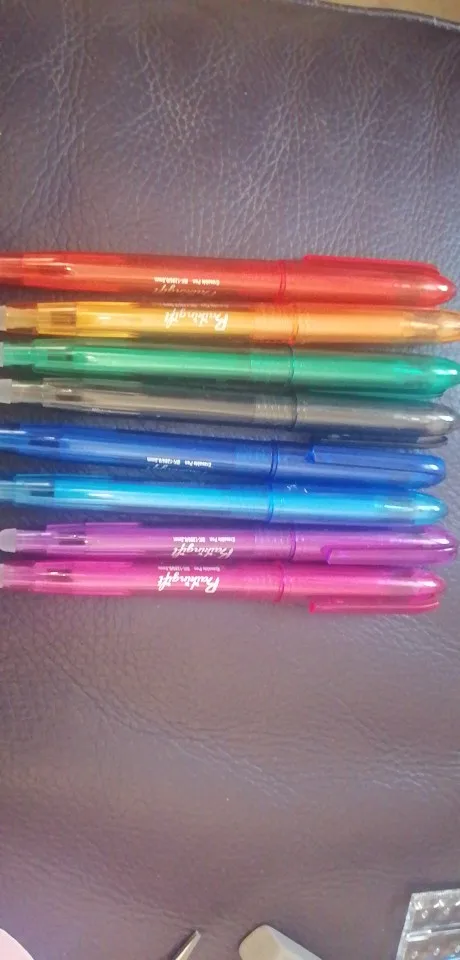 Из-за стираемого характера, не может быть использован в ценных бумагах и важных документов, подписанных Описание товара Стираемая ручка-это Специальное Пополнение, которое отличается от обычного пополнения. Если заправка стираемого пера имеет высокие температуры (это может быть во время транспортировки). Цвет заправки ручки изменится (станет молочно-белым), и даже привести к заправке нельзя. Если вы столкнулись с такой ситуацией, вы можете заморозить заправку ручки в морозильном отделении. После 12 часов цвет заправки пера вернется в норму. Удалите заправки из холодильника; Вам нужно подождать 1-2 часа, заправки можно использовать нормально.