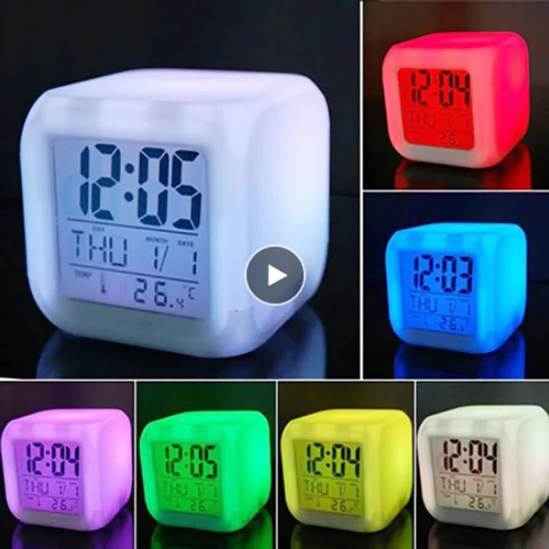 Будильник с цветным ночным светом, меняющий цвет белый экран, декомпрессионный светящийся цифровой светильник для спальни, многофункциональные аксессуары