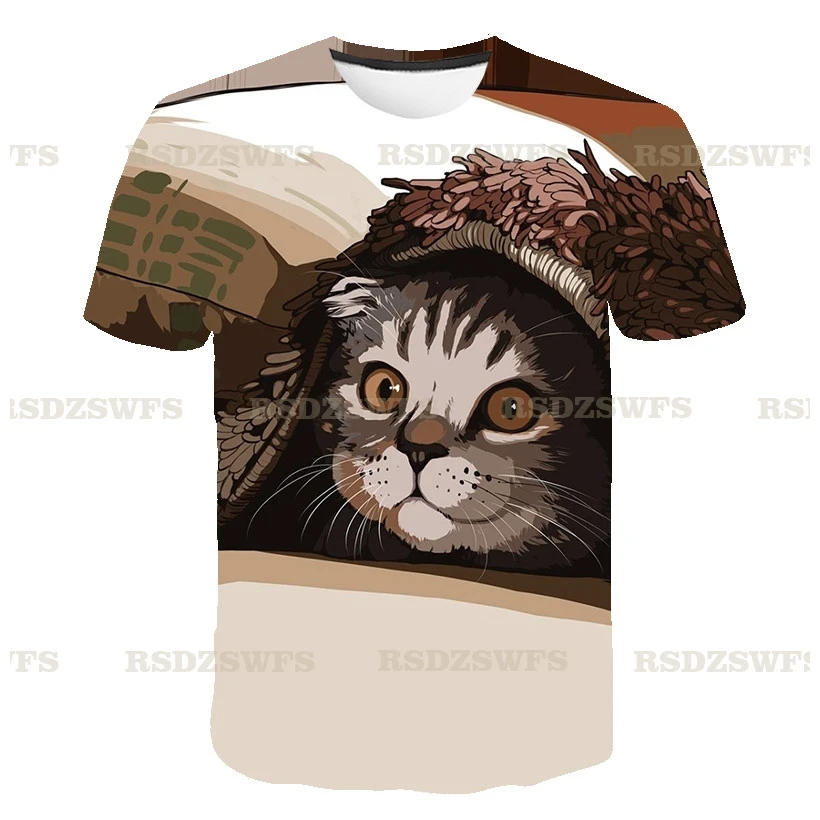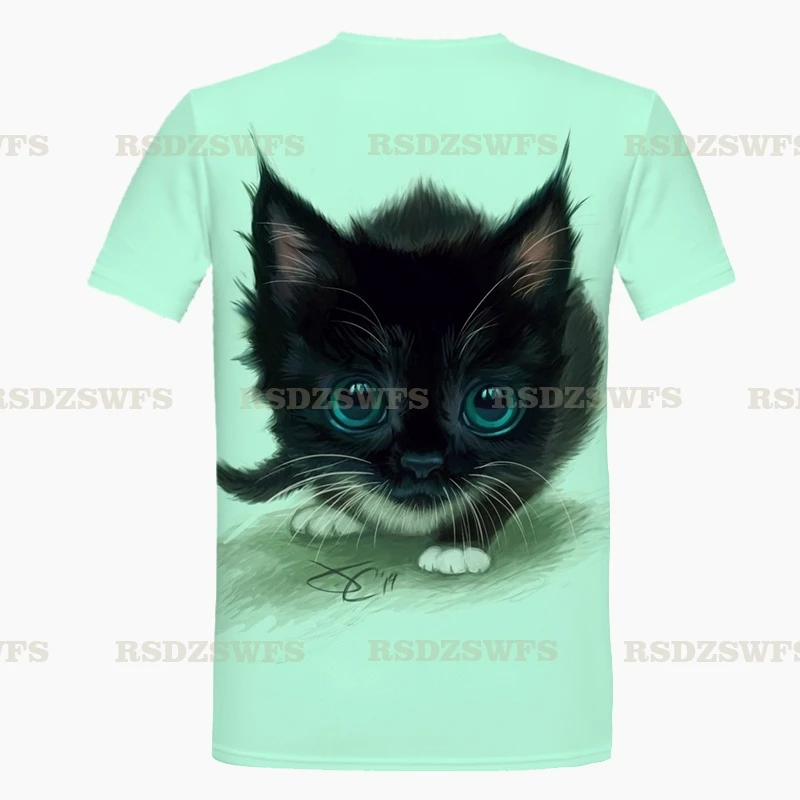 Летние мужские и женские футболки с котом, Короткие футболки для ма...