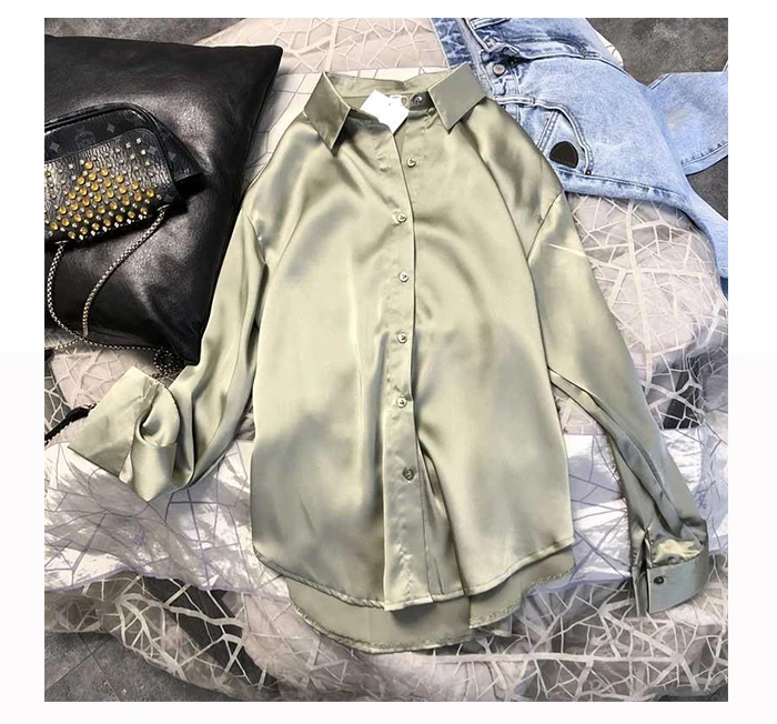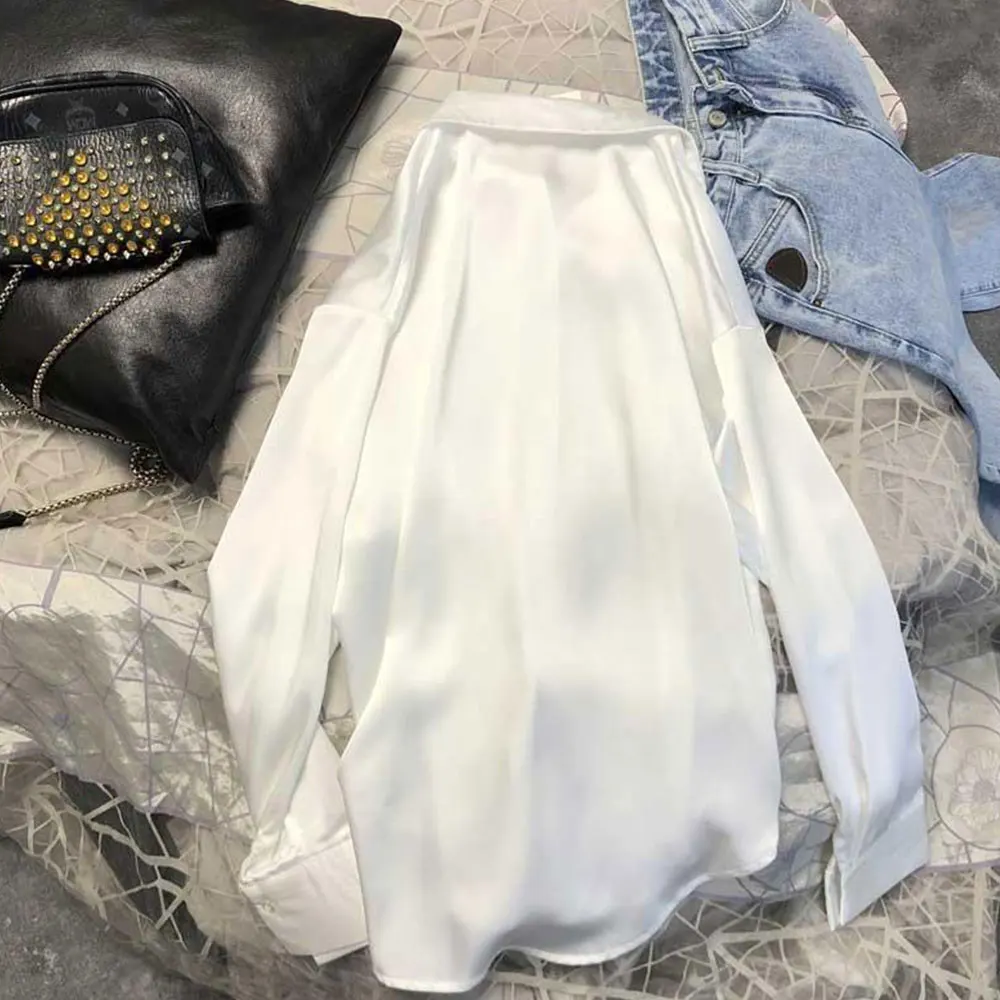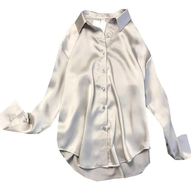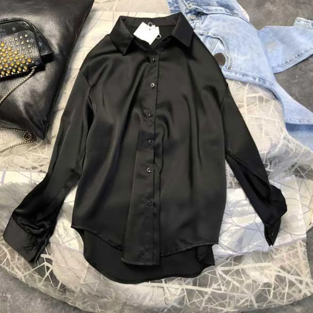 Блузка Gentillove Женская с длинным рукавом, шикарная атласная рубашка в Корейском стиле Харадзюку, топ оверсайз, простая универсальная туника, осень 2021
