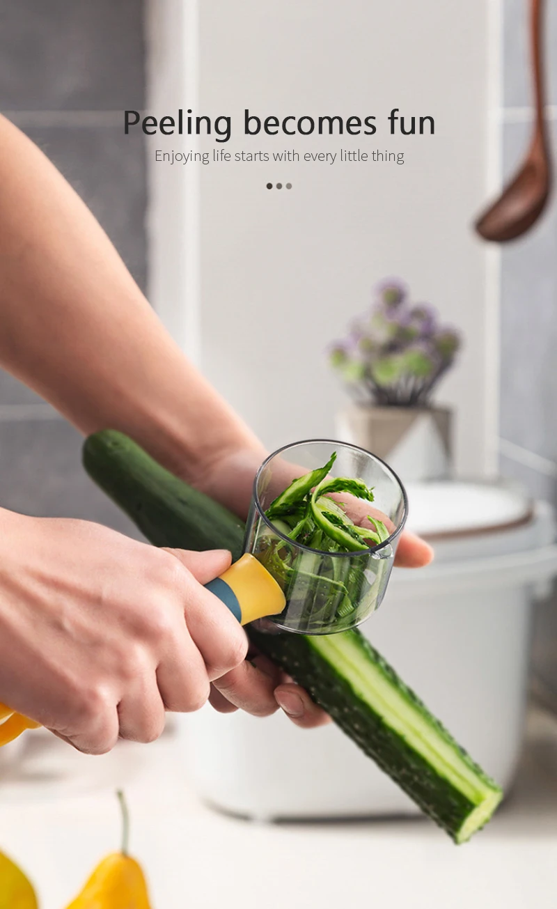 С помощью чашки для сбора кожуры: с тонкой, эргономичной нескользящей ручкой, которая помещается в ладонь вашей руки, наш Овощечистка предлагает полный контроль, как вы работаете! Отлично подходит как для левых, так и для правшей, это более безопасная и практичная альтернатива пилингу с помощью кожуры kni * fe.
