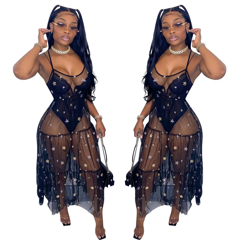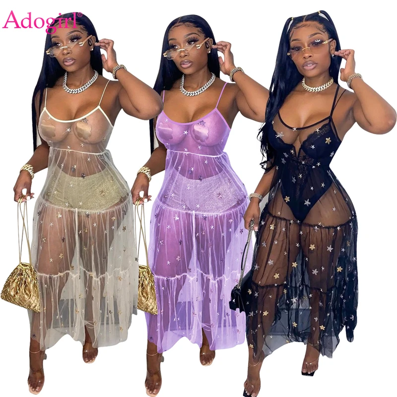 Платье женское Сетчатое на бретелях-спагетти, с блестками, пикантная длинная туника без рукавов, для ночного клуба, вечеринки, Прямая поставка