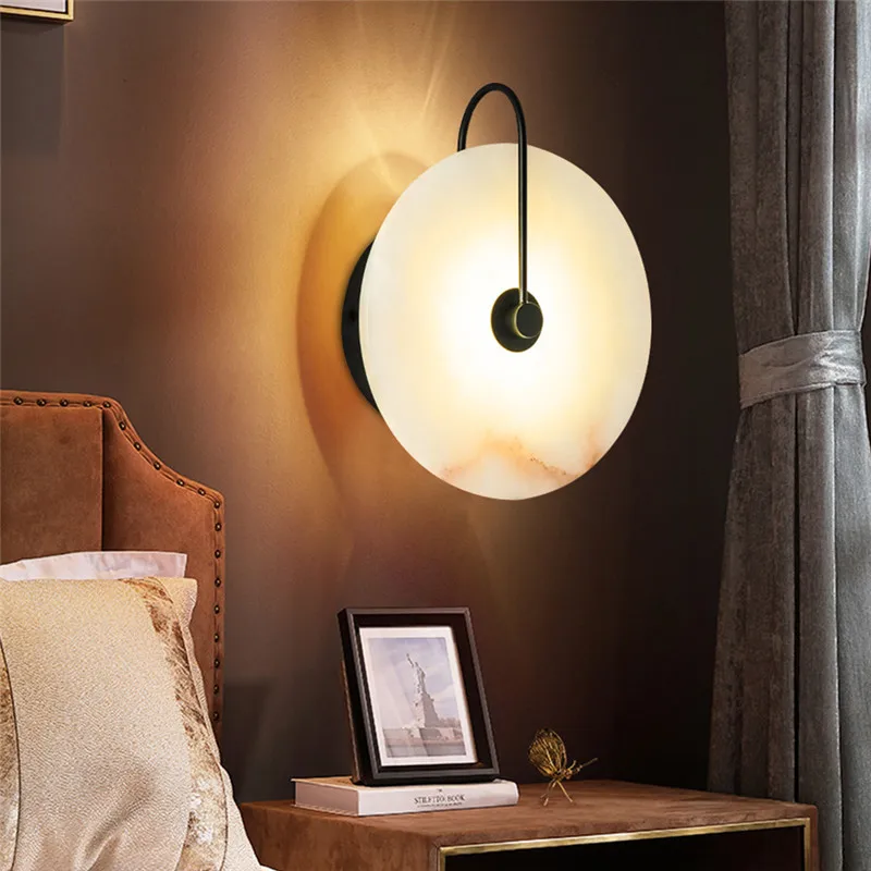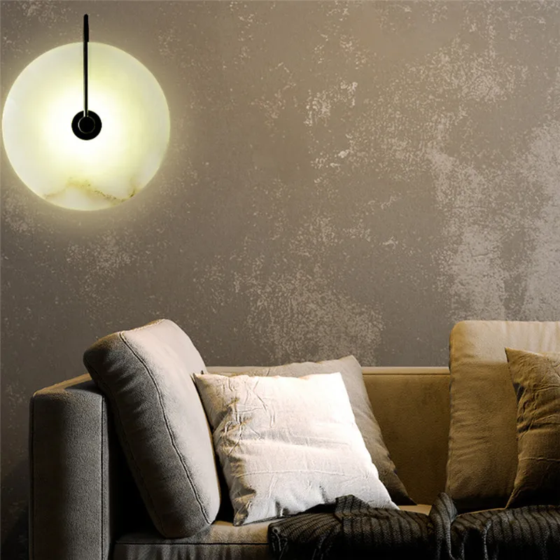 Настенный светодиодный абажур из натурального мрамора, комнатное освещение с металлическим основанием, модный декоративный бра для гостиной, столовой