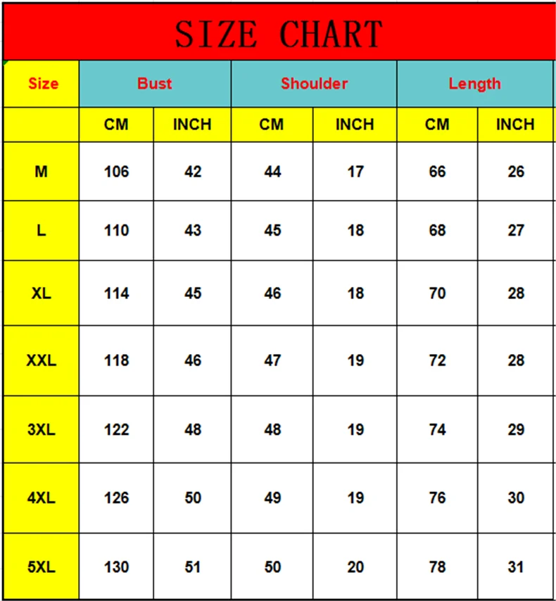 Asian SizeM,L, XL, XXL, 3XL, 4XL, 5XL