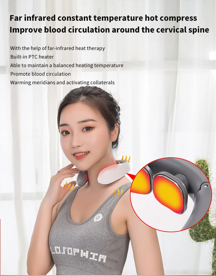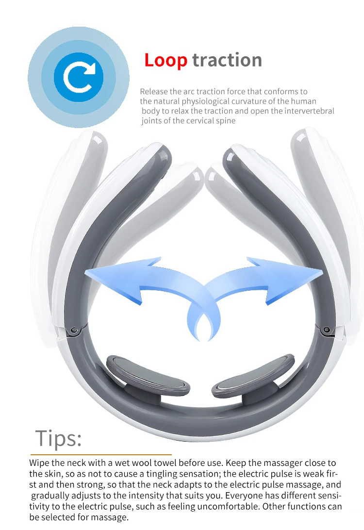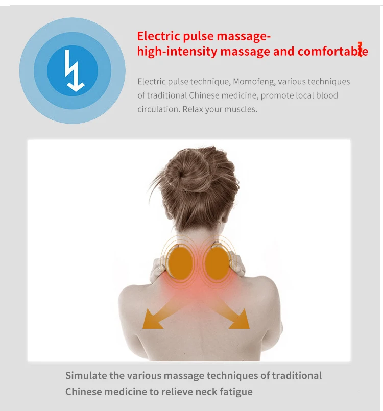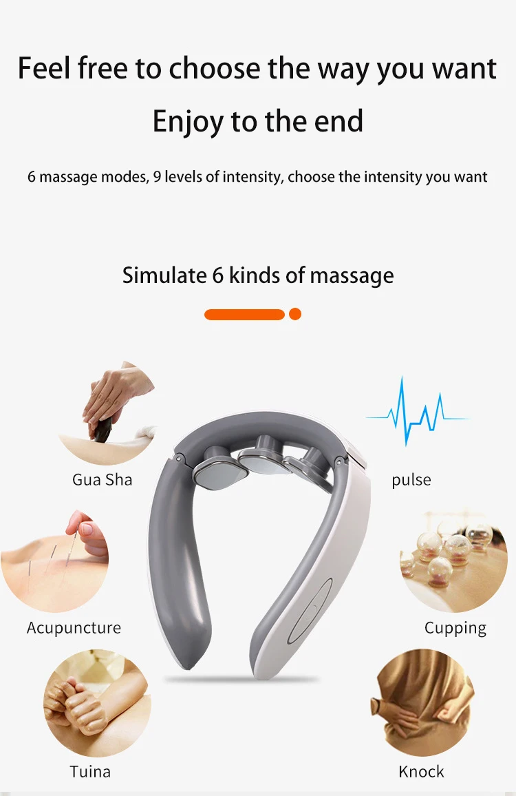 1. Благодаря технологии пульса низкого цикла, проникайте на 3-5 сантиметров ниже кожи, чтобы открыть болевые точки и меридианы и облегчить боль шейного отдела позвоночника.2. Массаж постоянной температуры. Горячий компресс при 42 ℃ может расслабить кровеносные сосуды, расслабить мышцы и кости, ускорить кровообращение и облегчить боль в Шейном отделе.3. 6 режимов массажа и 9-ступенчатое регулировки силы. Акупунктура и режим прижигания, режим массажа и режим стука.